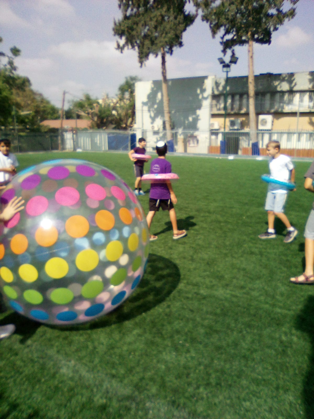 כדור עף ענק -משחקים ונרטבים -משחק בשילוב ממטרות מים סביב.